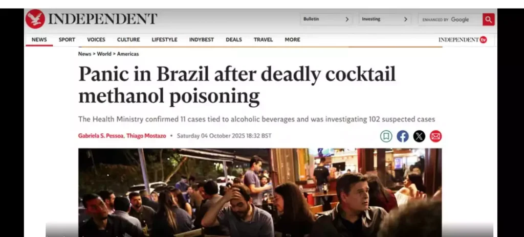 O jornal britânico The Independent afirmou que há um “pânico no Brasil” por causa dos casos de intoxicação. Segundo a publicação, muitos brasileiros têm optado por consumir apenas outras bebidas, como cerveja, chope e vinho, em vez de drinks. O veículo destacou ainda que “quase todos os casos foram relatados em São Paulo, o estado mais populoso do país e epicentro do surto”.